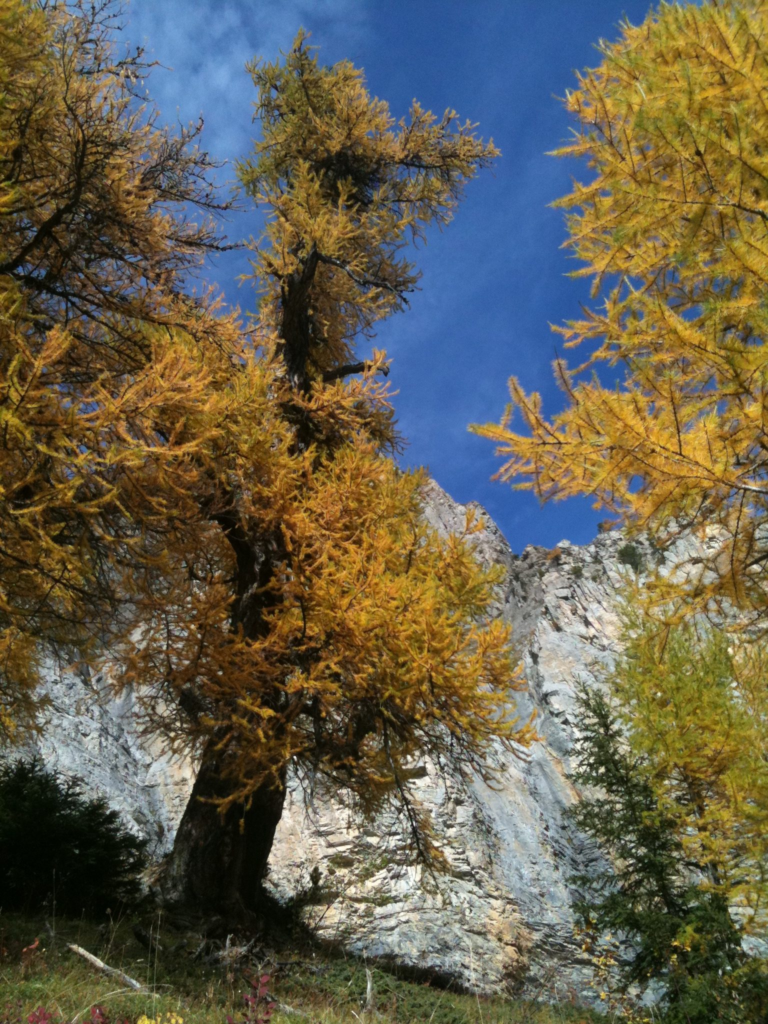 Magnifique tour, d’abord en balcon panoramique sur la vallée du Rhône, se faufilant entre les mélèzes centenaires, qui nous menèra au Portail de Fully.